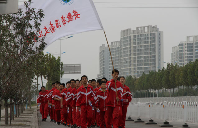 下午两点整,健步走活动正式开始,从我校正门出发,师生队伍排列整齐,步伐一致,兴致昂扬。队列中,同学们谈笑风生,互相鼓励着朝着终点——淮南东站行进着。