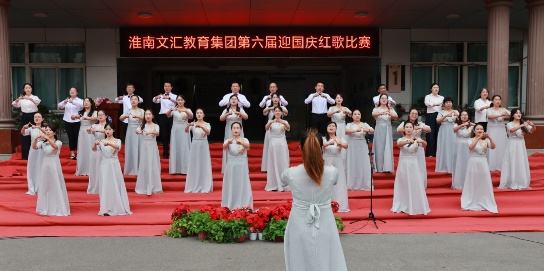 整场比赛,歌声不断,感动不断。一首首红歌,是对祖国光辉历程的深情回顾,是对祖国的热爱与祝福的真挚抒发,更展现出淮南文汇教育集团师生们积极向上、爱国爱校的精神风貌。在这红歌的海洋里,大家的心紧紧与祖国连在一起,共同祝愿祖国永远繁荣昌盛。