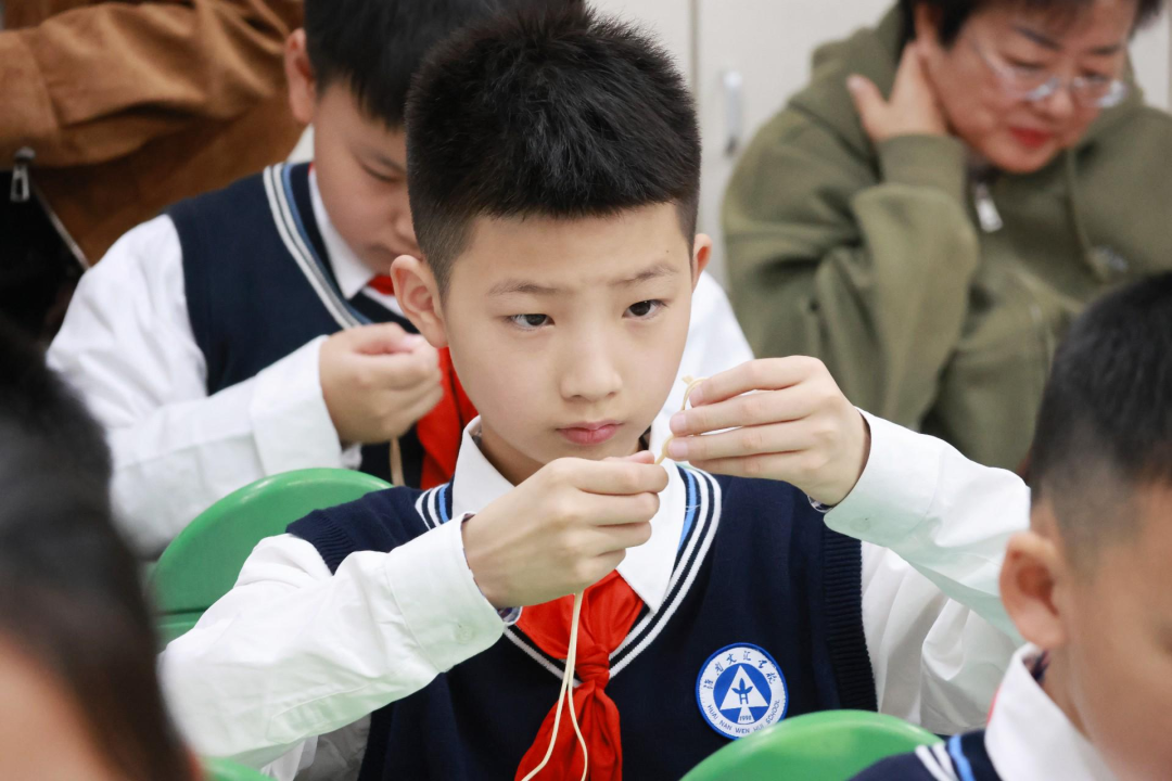 活动伊始,郭老师用生动有趣的语言开启“航空小课堂”。从飞机的基本结构、飞行原理,到橡筋动力直升机的能量转化,原本抽象的物理知识,在老师结合实物的讲解中变得通俗易懂。同学们睁大眼睛认真倾听,对“如何让小直升机飞起来”充满期待。