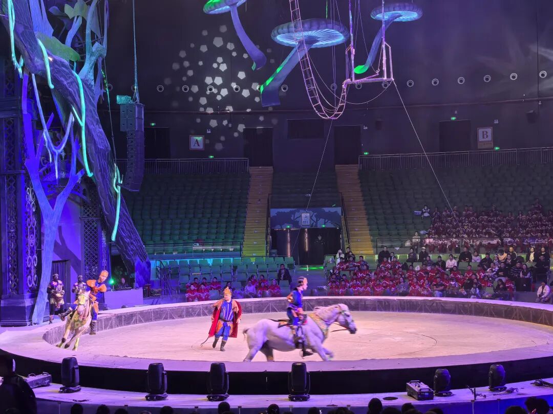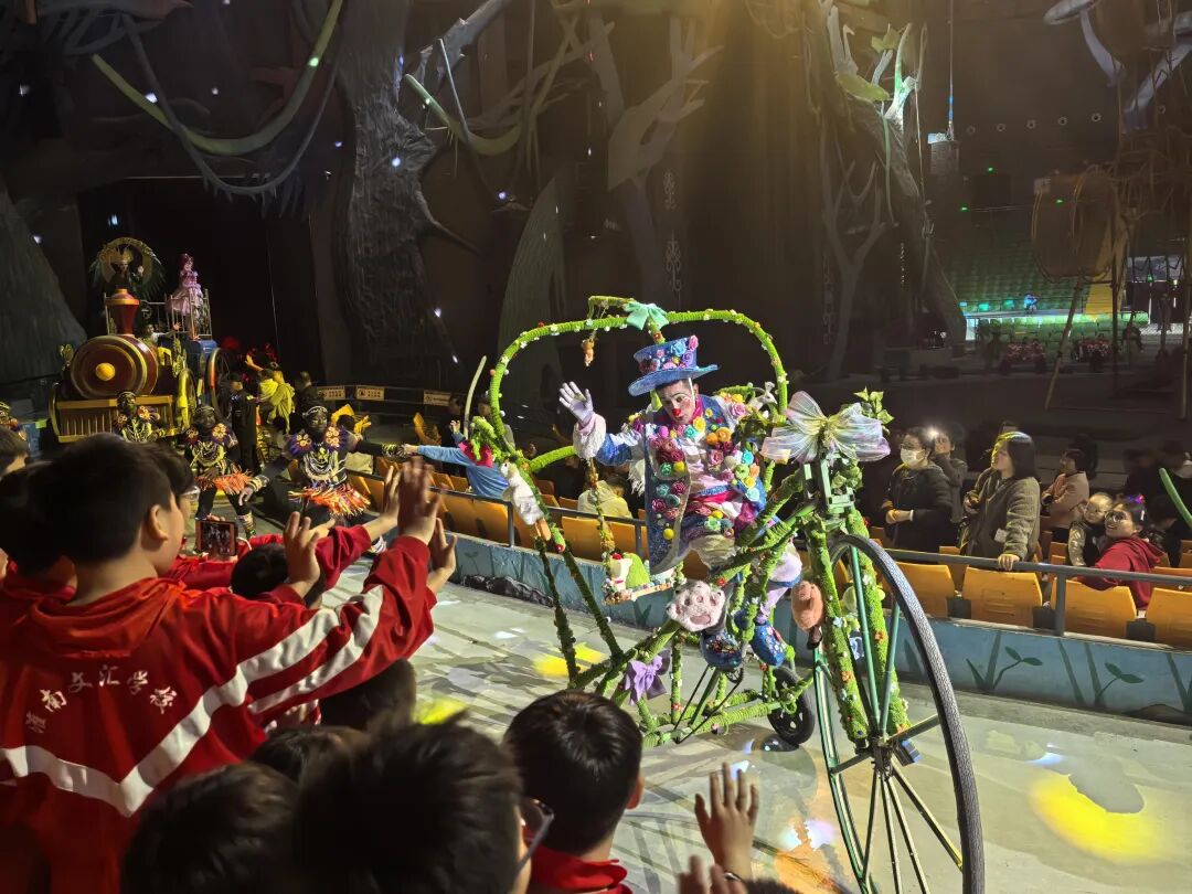 下午的国际大马戏更是将研学氛围推向高潮。魔幻的舞台,酷炫的灯光,美国跳水的惊险、空中飞人的炫酷、马术的优雅,搭配精彩的赛马,让孩子们全神贯注、不时欢呼鼓掌。收尾的巡游大狂欢中,绚丽花车、萌态动物人偶与热情演员一路与孩子们击掌互动,现场满是欢笑与欢呼。