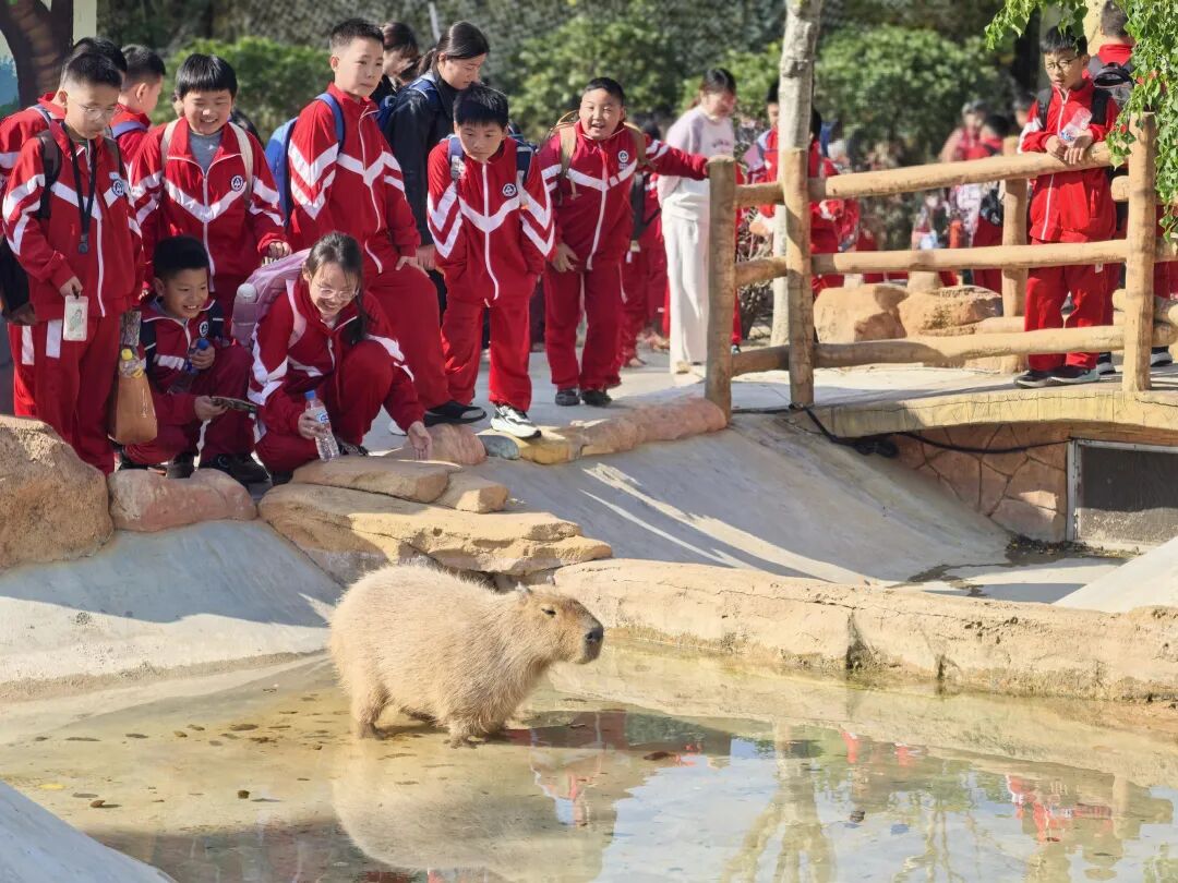 孩子们跳出课本、走进自然。刚入园,精彩的动物表演便点燃了孩子们的热情。金刚鹦鹉的机智对话、猴子的单绳绝技、海狮的灵动展演,草原动物轮番登场各显神通,这场妙趣横生的表演让现场欢笑不断。
