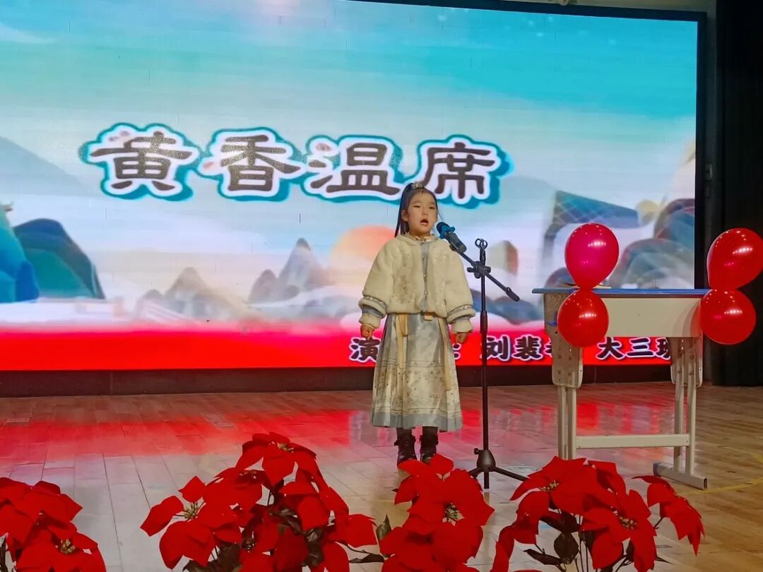大家好!我是来自文汇幼儿园大二班的黄奕非。今天我要给大家讲一个超暖心的故事,它就像小太阳一样,能让冬天变暖和,这个故事的名字叫《黄香温席》!