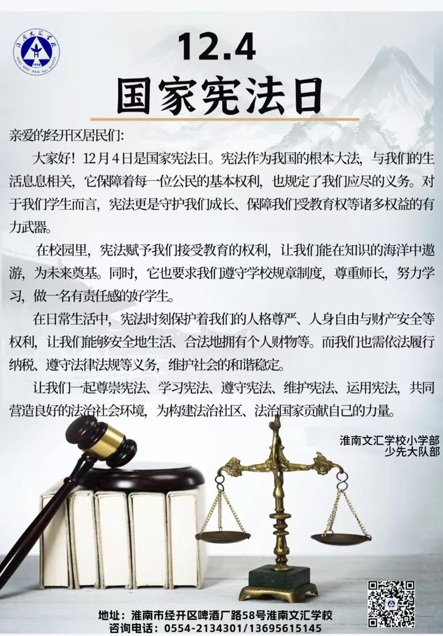 为迎接我国第十二个国家宪法日,深入贯彻2025年“学习宣传贯彻习近平法治思想,推动宪法深入人心”的宪法宣传周主题精神,进一步厚植少年儿童的法治信仰,我校小学部策划开展了“宪法学习进课堂、志愿宣传进社区”系列活动,让宪法精神在校园扎根、在社区传递。