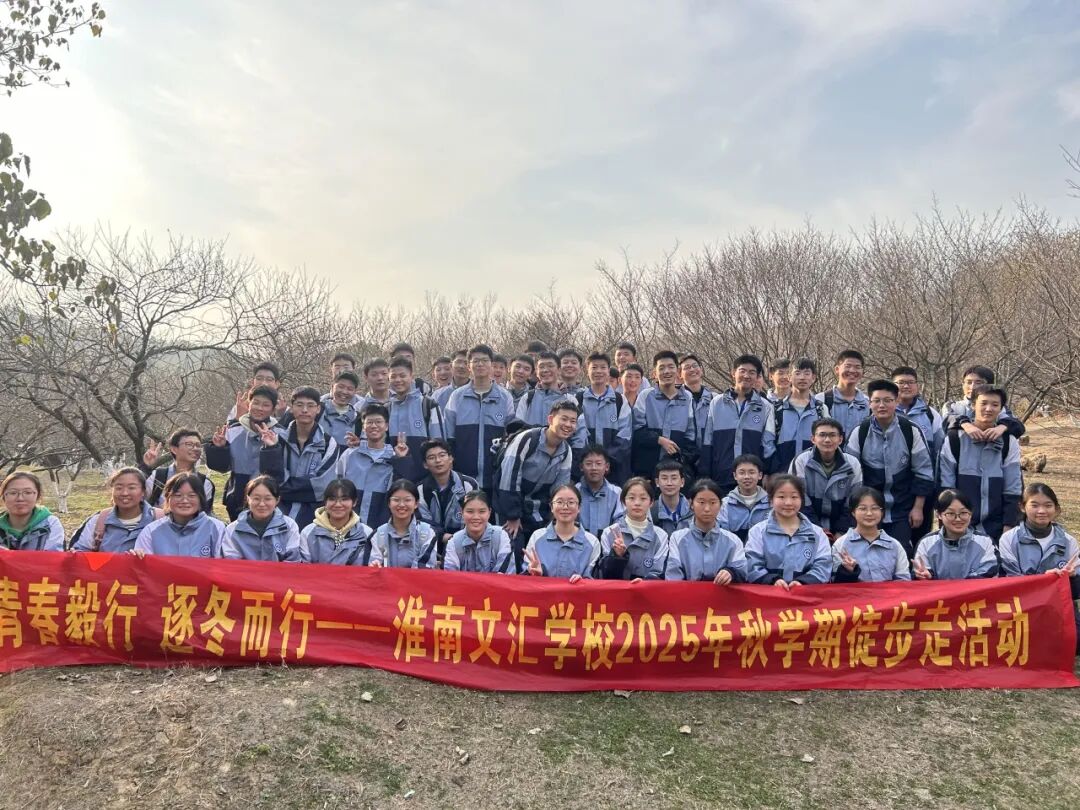 活动出发前,学校举行了简短而庄重的动员仪式。童校长发表讲话,他勉励同学们在徒步过程中发扬坚持不懈、团结协作的精神,感受自然之美,锤炼坚毅品格,展现文汇学子的良好风貌。随后,康思佳主任、佘祥云老师对活动流程、安全注意事项等进行详细部署,确保活动有序开展。七年级管若同学作为学生代表发言,表达了同学们对此次毅行活动的期待与决心,号召大家携手同行,挑战自我。 动员仪式结束后,童校长大鼓敲响的瞬间,徒步正式拉开序幕,各年级队伍有序出发。七八年级学生朝着淮南湿地公园方向行进,九年级学生则奔赴淮南梅园,开启了各自的毅行之旅。途中,同学们精神抖擞,步伐坚定,相互鼓励、彼此扶持,嘹亮的口号声与欢快的笑声回荡在沿途。 抵达目的地后,丰富多彩的班级活动如期开展。七八年级在淮南湿地公园内组织了拔河比赛、班歌合唱等活动。拔河场上,同学们凝心聚力、奋勇拼搏,场边加油声此起彼伏;班歌演唱环节,各班歌声嘹亮、气势如虹,展现了强烈的班级凝聚力。九年级学生在淮南梅园以班级为单位开展互动活动,大家登上梅亭眺望远方、交流心得,在轻松愉快的氛围中增进彼此感情,缓解学习压力。学校还特别为大家准备了暖心的蜂蜜柠檬水。