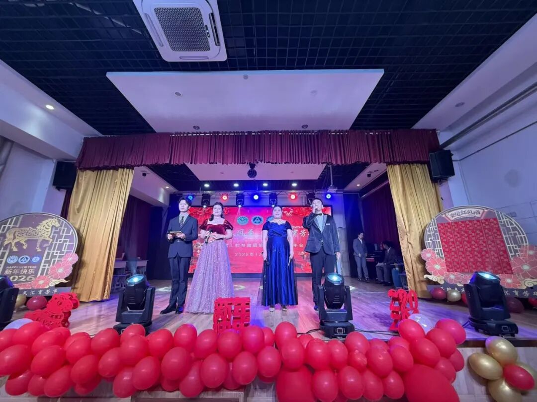 文艺汇演环节精彩纷呈、创意迭出。集团行政带来的《唱响新春 舞动芳华》拉开演出序幕,点燃全场氛围;小学部《美人秀》展现教师不一样的风采,幼儿园舞蹈《明月迎新春》尽显古风雅韵;中学部英语组《师生情缘之意难平》演绎师生间的啼笑因缘,女职部《甄嬛传之我爱上班》以幽默方式再现职场日常,引发阵阵欢笑;黑白连体秀、说唱串烧《年度卷王》等节目打破常规,尽显文汇教师的多才多艺;男高音独唱《祖国,慈祥的母亲》与歌伴舞《母亲是中华》更是将家国情怀融入表演,赢得满堂喝彩。