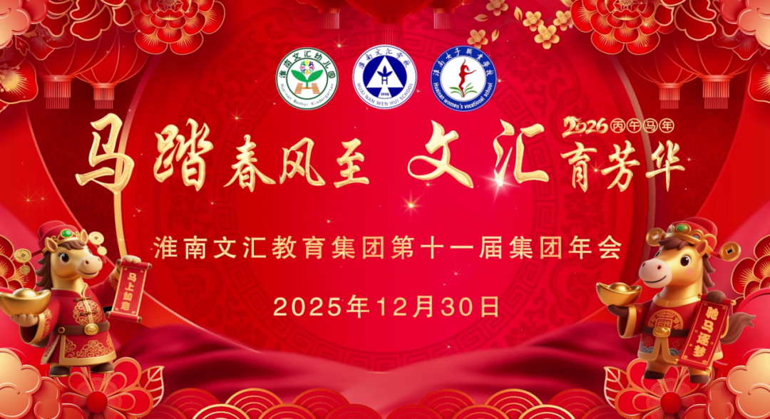 岁序更替,华章日新。12月30日下午,淮南文汇教育集团第十一届年会在桃蹊堂温情启幕,以“马踏春风至 文汇育芳华”为主题,全体教职工欢聚一堂,共忆奋斗岁月,共话教育初心,共绘新年蓝图。